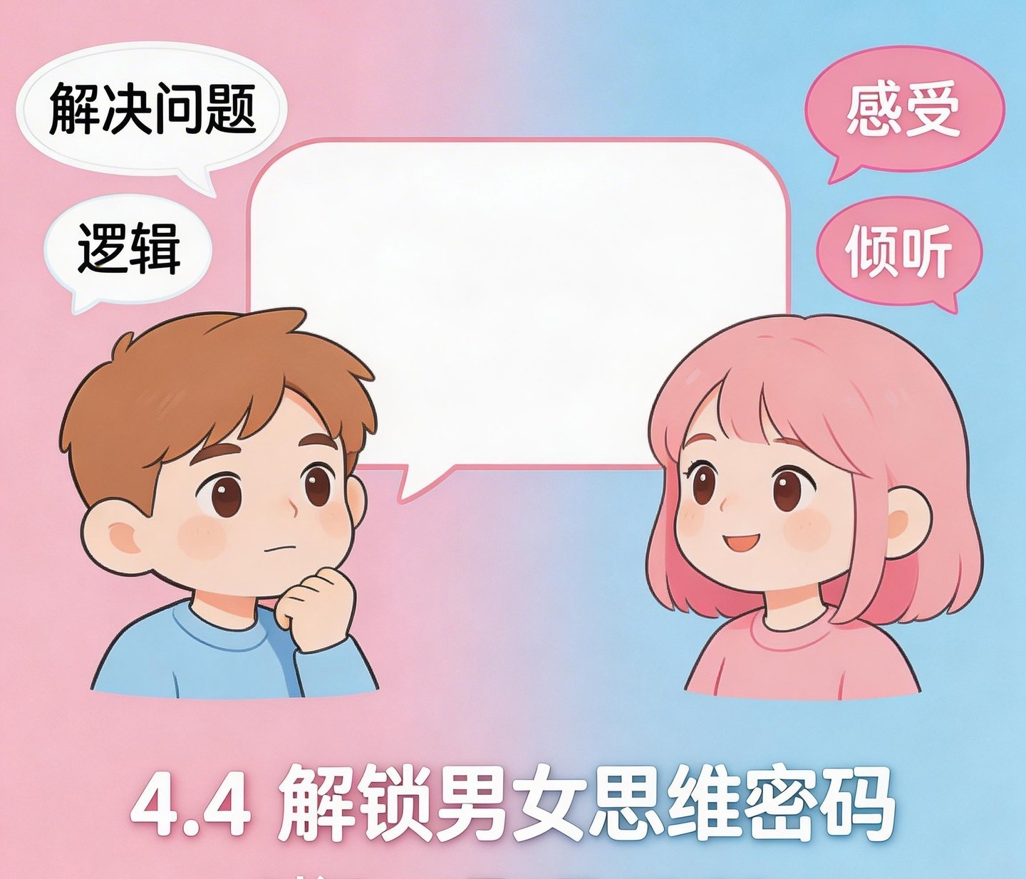 同样一句话,男女接收到的信息可能天差地别——比如女生分享工作烦恼时,期待的是“我懂你的不容易”,男生却可能立刻抛出“你应该这样做”的解决方案,结果好心办了“坏事”。